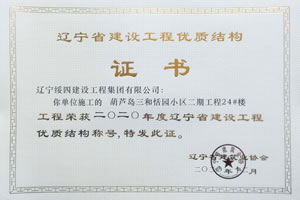 “葫蘆島三和恬園小區(qū)二期工程24#樓”榮獲2020年度遼寧省建設(shè)工程優(yōu)質(zhì)結(jié)構(gòu)稱號