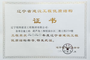 “葫蘆島三和恬園小區(qū)二期工程25#樓”榮獲2020年度遼寧省建設(shè)工程優(yōu)質(zhì)結(jié)構(gòu)稱號