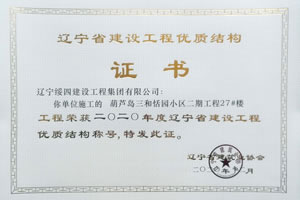 “葫蘆島三和恬園小區(qū)二期工程27#樓”榮獲2020年度遼寧省建設(shè)工程優(yōu)質(zhì)結(jié)構(gòu)稱號