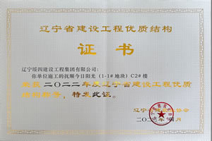 撫順今日陽光 (1-1# 地塊)C2# 樓榮獲2022年度遼寧省建設(shè)工程優(yōu)質(zhì)結(jié)構(gòu)稱號