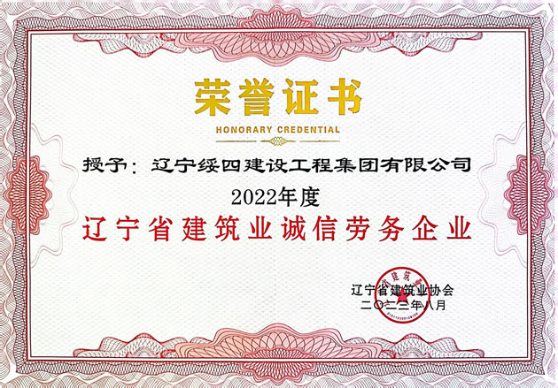 2022年度遼寧省建筑業(yè)誠(chéng)信勞務(wù)企業(yè)