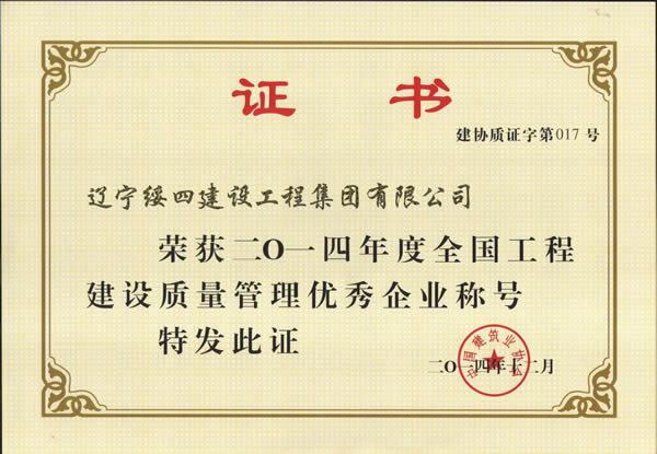 全國工程建設(shè)質(zhì)量管理優(yōu)秀企業(yè)