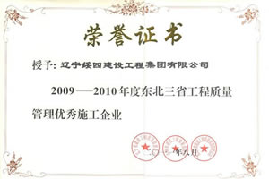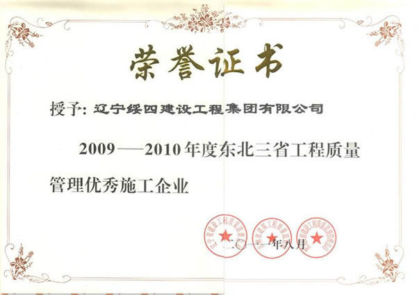 東北三省工程質(zhì)量管理優(yōu)秀施工企業(yè)