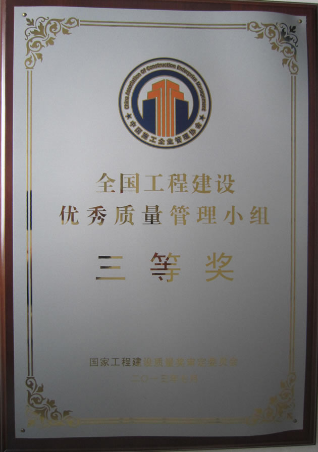 全國(guó)優(yōu)秀質(zhì)理管理小組三等獎(jiǎng)