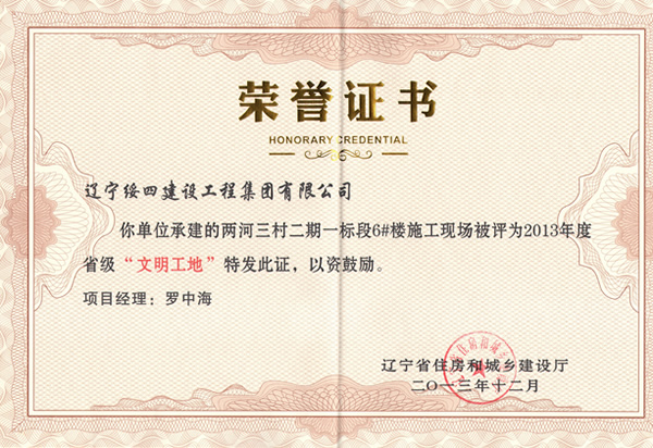 “三河兩村”2013省文明工地稱(chēng)號(hào)