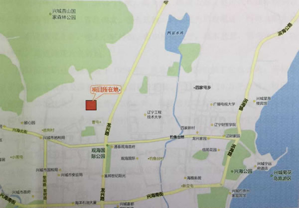 項目位于興城市曹屯,臨近渤海船舶職業(yè)學(xué)院新校區(qū),中心坐標為東經(jīng)120°45′4996″、北緯40°37′2628″。具體位置見圖3-1。