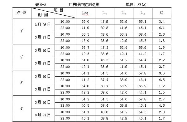 監(jiān)測結(jié)果:廠界四周晝、夜間噪聲監(jiān)測值均達到《社會生活環(huán)境噪聲排放標準》(GB22337-2008)1類區(qū)標準標準,屬達標排放。