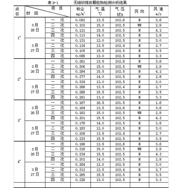 、 《大氣污染物綜合排放標準》(GB16297-1996)中新污染源二級排放標準要求,無組織排放顆粒物1.0mg/m3;