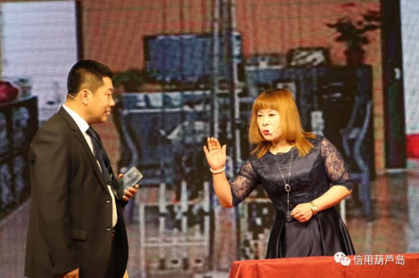 聯(lián)誼會上的文藝演出可以說是精彩紛呈,高潮迭起。歡快的開場舞引燃了全場的熱情,詩朗誦《誠信之歌》把每一個會員單位融入其中,用詩歌的形式講述著誠信的故事,讓大家心潮澎湃,備受鼓舞。歌曲《闖天涯》、《美麗的神話》還在耳邊余音繚繞。誠信主題小品《姜太公釣魚》讓大家在歡笑中體會誠信的重要,軍旅舞蹈英姿颯爽,鐵骨錚錚。阜新銀行綏中支行小伙伴們表演的三句半《會員贊》,用生動詼諧的方式為多家會員單位的優(yōu)異成績點(diǎn)贊,迎來掌聲陣陣!段覀兊淖鎳杼鸹ㄏ恪烦鋈珗鏊屑钨e熱愛祖國的心聲。