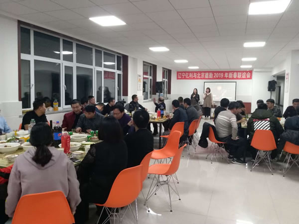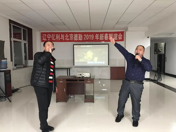 值此新春佳節(jié)之際,作為東道主的我們?yōu)榱吮硎緦Φ虑诠就碌臒崃覛g迎與新春祝福,當(dāng)晚,在領(lǐng)導(dǎo)的安排下,我公司舉辦了一場“遼寧億利與北京德勤2019年新春聯(lián)誼會”。聯(lián)誼會上大家積極踴躍的表演才藝,機電設(shè)備部部長潘曉閣和機電設(shè)備部賀善強師傅高歌一首《眾人劃槳開大船》將整個聯(lián)誼會推上了高潮。