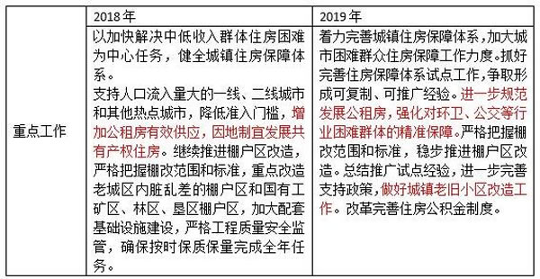 解讀:與2018年相比,此次會(huì)議中將租賃住房分成了市場化租賃和政策性租賃兩個(gè)領(lǐng)域。其中,政策性租賃住房首次提到。