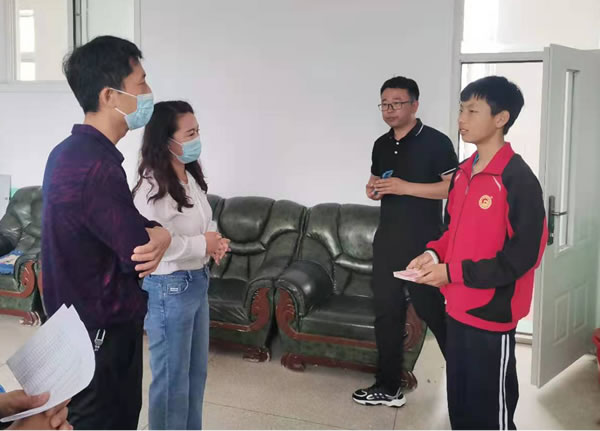 6月17日,在荒地鎮(zhèn)黨委、婦聯(lián)領(lǐng)導(dǎo)的陪同下,遼寧綏四建工集團代表來到荒地鎮(zhèn)中學(xué),牽手六年級品學(xué)兼優(yōu)的貧困學(xué)生岳陽,為他送來2000元助學(xué)金,并表示大學(xué)畢業(yè)前每個學(xué)期他都會準時收到這筆錢。
