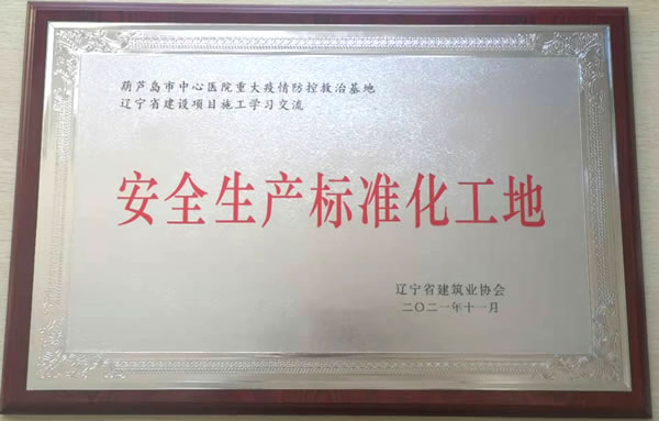 2021年11月,我集團承建的葫蘆島市中心醫(yī)院重大疫情防控救治基地,被遼寧省建筑業(yè)協(xié)會評為“安全生產(chǎn)標(biāo)準(zhǔn)化工地”。