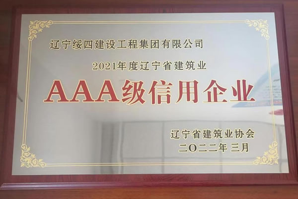 2022年3月,遼寧綏四建工集團(tuán)有限公司被遼寧省建筑業(yè)協(xié)會(huì)評(píng)為2021年度遼寧省建筑業(yè)AAA級(jí)信用企業(yè)。