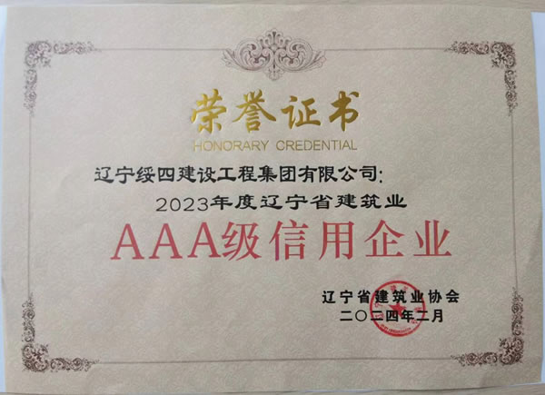 2024年5月,遼寧綏四建設(shè)工程集團有限公司榮獲遼寧省建筑業(yè)協(xié)會頒發(fā)的“2023年度遼寧省建筑業(yè)AAA級信用企業(yè)”和“2023年度遼寧省建筑業(yè)優(yōu)秀企業(yè)”榮譽證書。