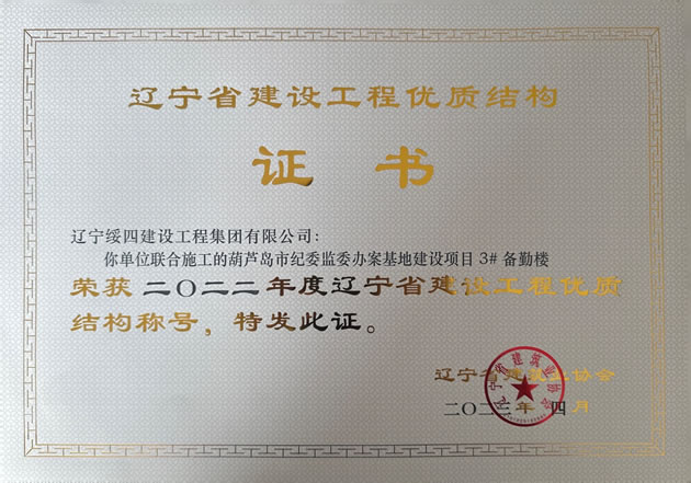 葫蘆島市紀委監(jiān)委辦案基地建設項目 3# 備勤樓榮獲2022年度遼寧省建設工程優(yōu)質(zhì)結構稱號
