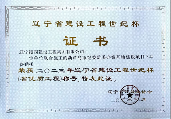 葫蘆島市紀委監(jiān)委辦案基地建設項目3#備勤樓 榮獲2023年遼寧省建設工程世紀杯(省優(yōu)質(zhì)工程)稱號