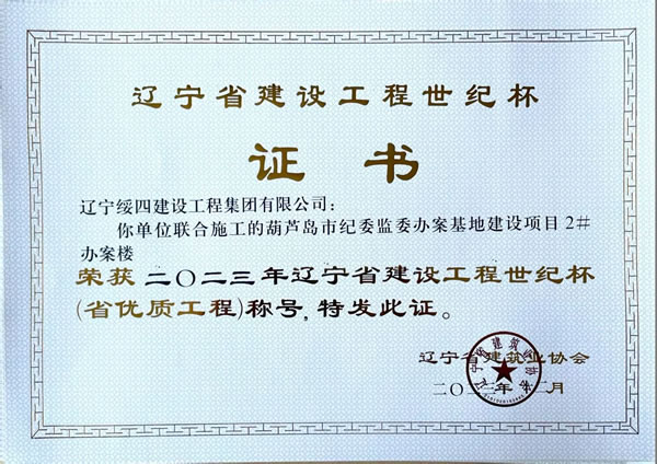 葫蘆島市紀(jì)委監(jiān)委辦案基地建設(shè)項目2#辦案樓 榮獲2023年遼寧省建設(shè)工程世紀(jì)杯(省優(yōu)質(zhì)工程)稱號